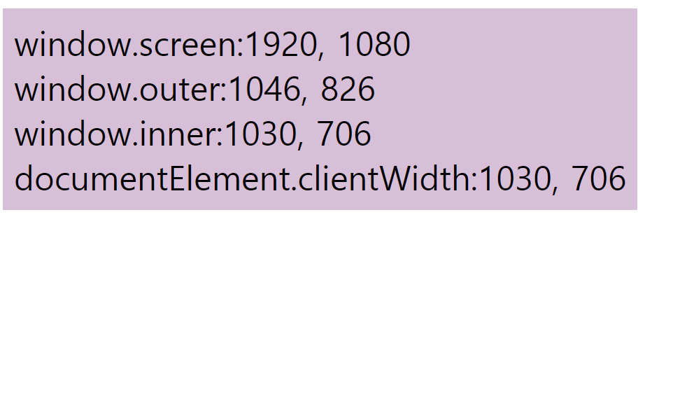 documentElement.clientWidth:${document.documentElement.clientWidth}, ${document.documentElement.clientHeight}`;